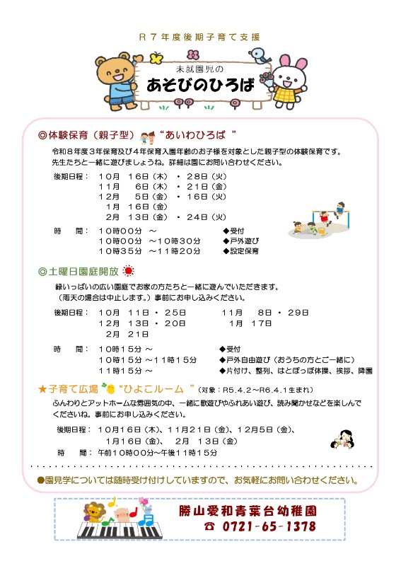 (勝山愛和青葉台幼稚園 ☎️0721-65-1378)